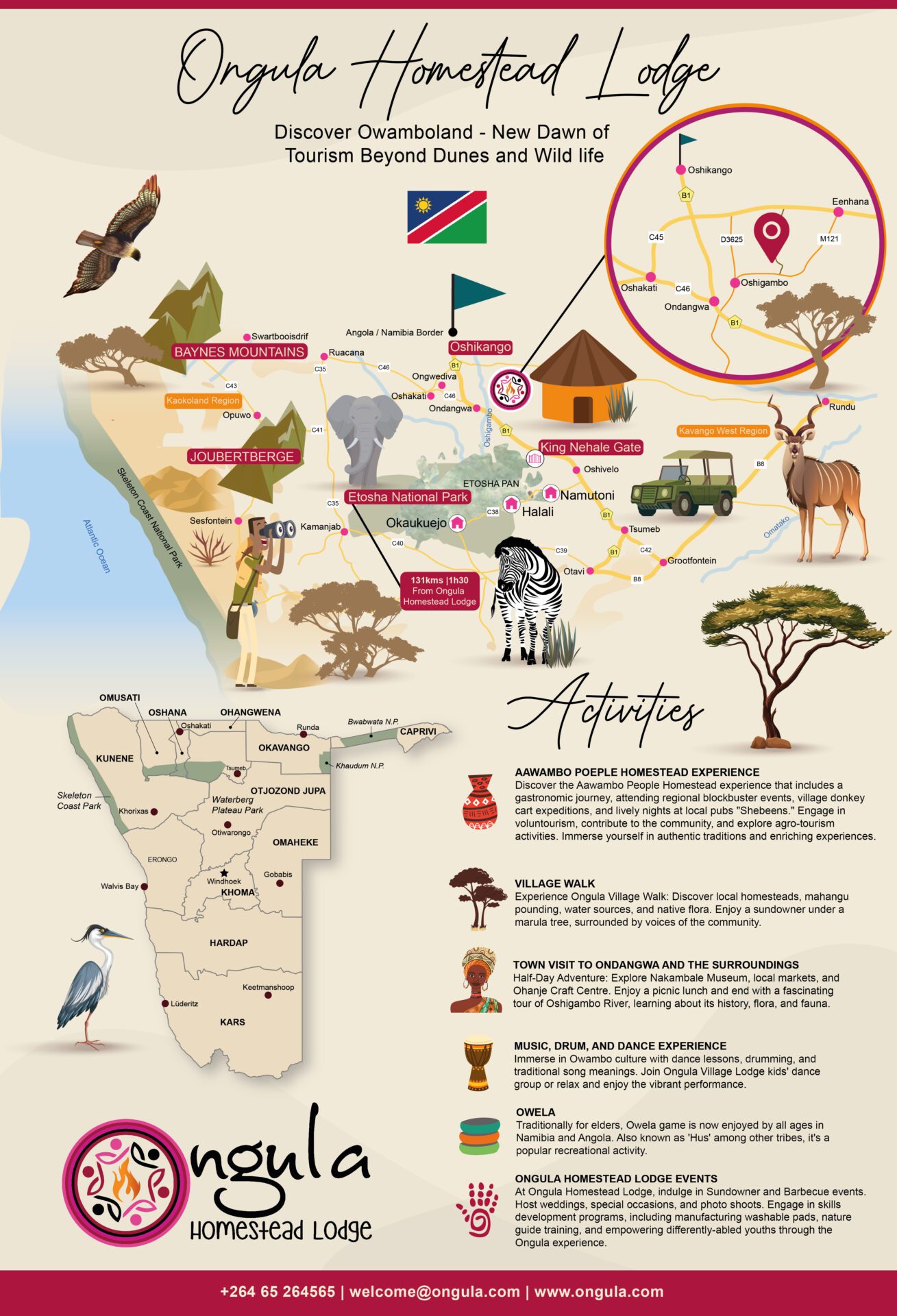 Join us in discovering the captivating spirit of Northern Namibia. Come, be a part of our story, and let the essence of Owamboland weave its magic around you.